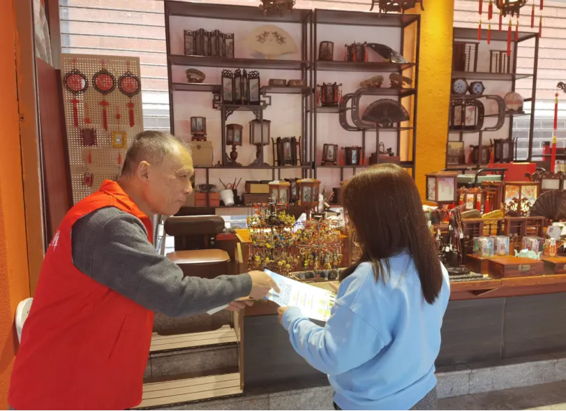 越秀区“3·5”学雷锋志愿服务主题月活动启动仪式在北京路城隍庙忠佑广场举行,现场设立志愿服务集市,越秀区老干部志愿者服务队队员们在“门前三包”集市摊位助力宣传,向商铺派发宣传单,向市民科普电动车规范停放的重要性,争做雷锋精神的传承者。