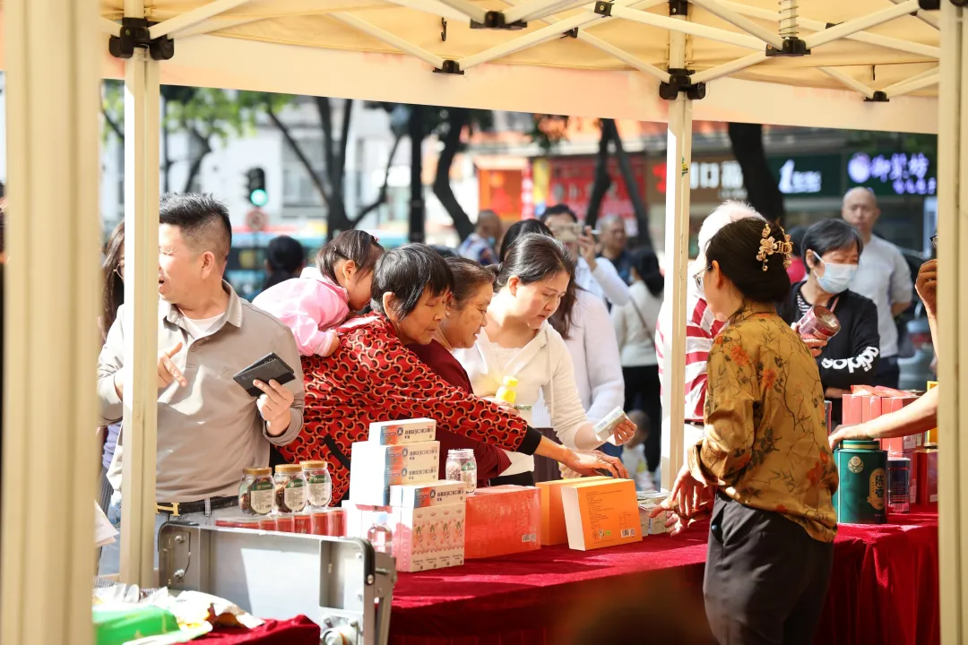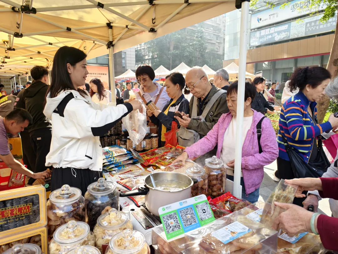 “这个牛奶奶味足、不齁甜,适合我们老年人”“既能囤年货,又能帮到乡亲们,一举两得”……市集上,老同志和街坊们拎着购物袋穿梭在摊位间,脸上洋溢着笑容;摊主们热情招呼、细心讲解,一派热闹温馨的景象。