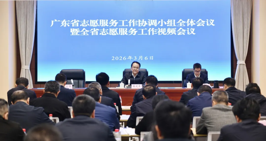 3月6日上午,广东省志愿服务工作协调小组全体会议暨全省志愿服务工作视频会议在广州召开。会议深入学习贯彻习近平总书记关于志愿服务的重要论述和党的二十届四中全会精神,持续贯彻落实中办、国办《关于健全新时代志愿服务体系的意见》,认真落实全国社会工作部长会议及全省高质量发展大会等有关部署要求,总结2025年全省志愿服务工作,研究部署2026年重点工作,推动“志愿广东”建设纵深发展,为广东奋进“十五五”凝聚最广泛的社会力量。省志愿服务工作协调小组召集人、省委社会工作部部长、省委“两新”工委书记崔建军出席会议并讲话,省志愿服务工作协调小组副召集人、省委社会工作部副部长王利春主持会议。