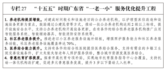 完善老年健康服务体系。贯彻积极老龄观和健康老龄化理念,开展老年健康促进行动,做好老年健康管理服务,提升老年人主动健康能力。推动老年医学科建设,加强老年医学人才培养,创建一批岭南特色老年医院、老年医学中心,改善老年人看病就医体验。推行长期护理保险,健全失能失智老年人照护体系,增加养老护理型床位,扩大康复护理、安宁疗护、医康养结合服务供给,发展“候鸟式”养老服务,不断满足老年人健康需求。