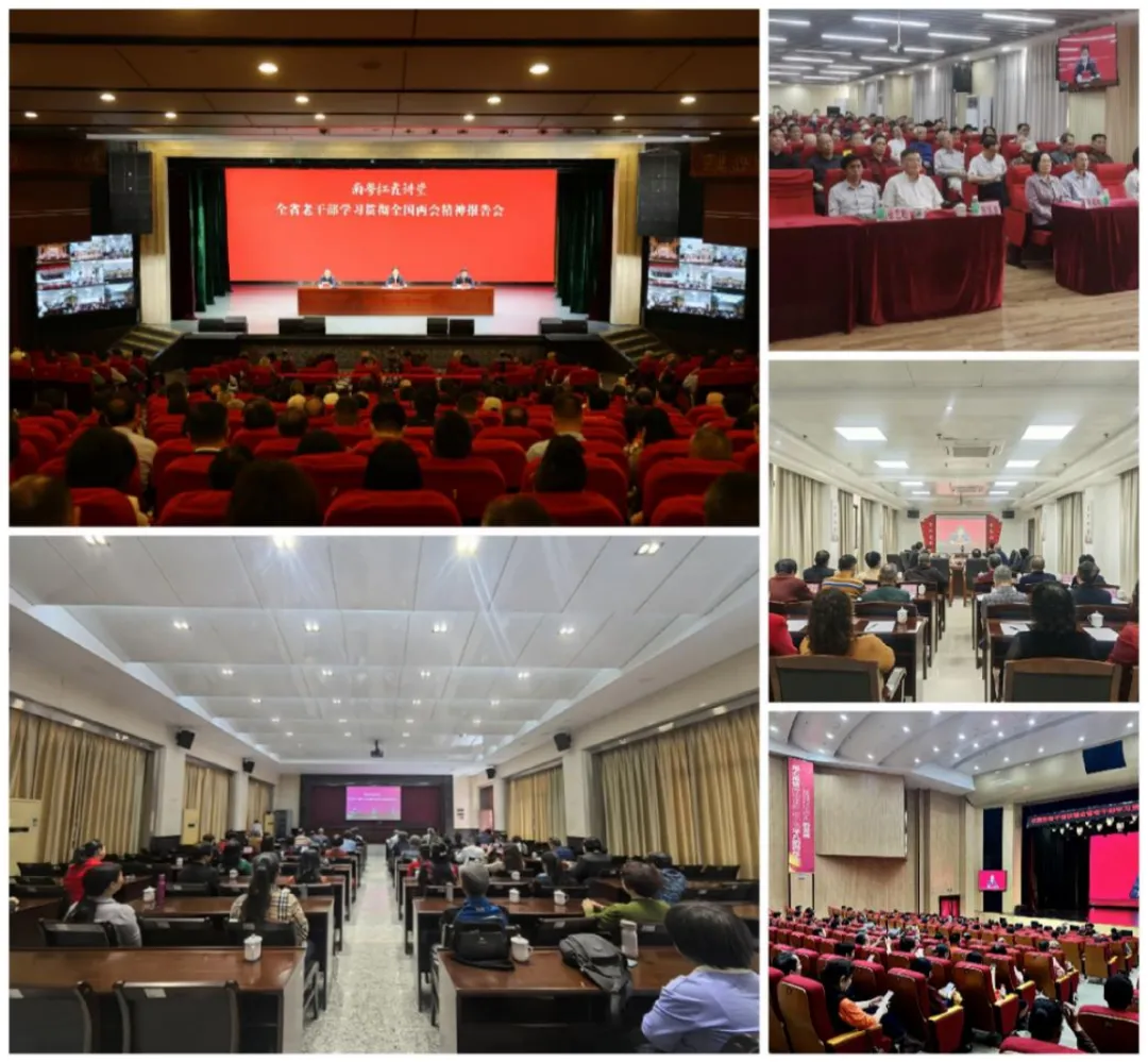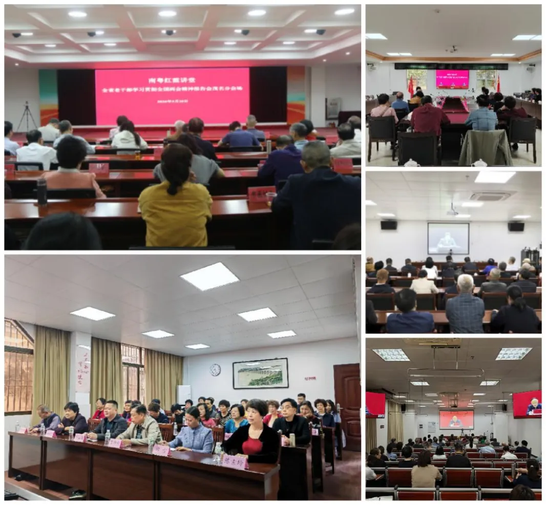 近日,省委老干部局举办“南粤红霞讲堂”全省老干部学习贯彻全国两会精神报告会,组织老同志传达学习习近平总书记在全国两会上的重要讲话和全国两会精神。报告会以视频会议形式开至各地级以上市,省直和中直驻穗单位厅级退休干部、老干部工作者代表在省老干部大学主会场,各地级以上市厅级老干部、处级老干部、离退休干部党支部书记代表等在各地市分会场参加会议。老同志们踊跃参加,听报告、谈感悟、话发展,认真学习领会总书记重要讲话和全国两会精神。