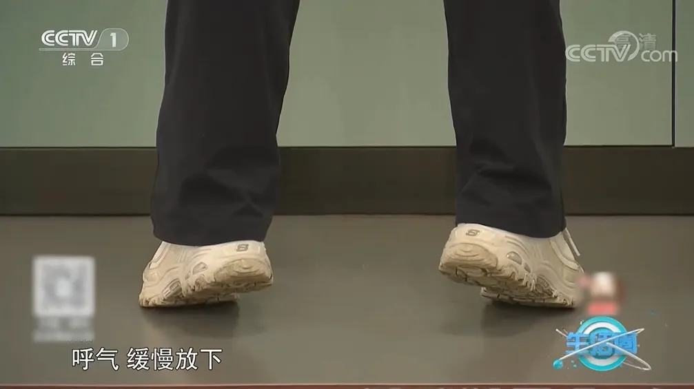 向下颠足时,身体放松,轻轻咬牙,先缓缓下落一半,然后足跟轻震地面。