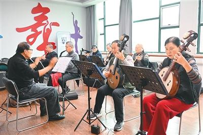 近年来,河南省漯河市源汇区在社区开办老年大学公益课堂,为老人传授音乐、舞蹈、书法、绘画等技艺,让老人们真正实现老有所乐、老有所为。图为源汇区马路街街道八一路社区,老年音乐爱好者在演奏乐器。尤亚辉摄(人民视觉)