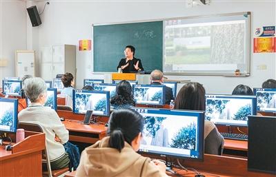 重庆市渝北区,重庆市老年大学为老年学员搭建了终身学习平台,他们在此以艺术点亮生活,用知识充实自我,展现“银龄”人生的无限精彩。图为摄影创作课上,银龄学员学习摄影知识。罗 川摄(人民视觉)