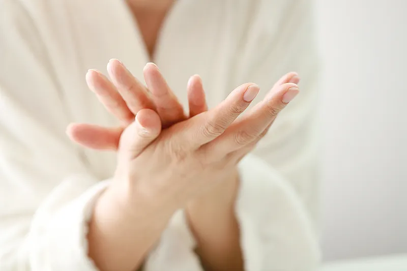 三阴三阳经均在手部循行,搓搓手心、手背,按按指腹、指尖,可以调养心肺。搓手心时,将两掌合并,来回对搓;搓手背时,手心对对侧手背,上下搓动。